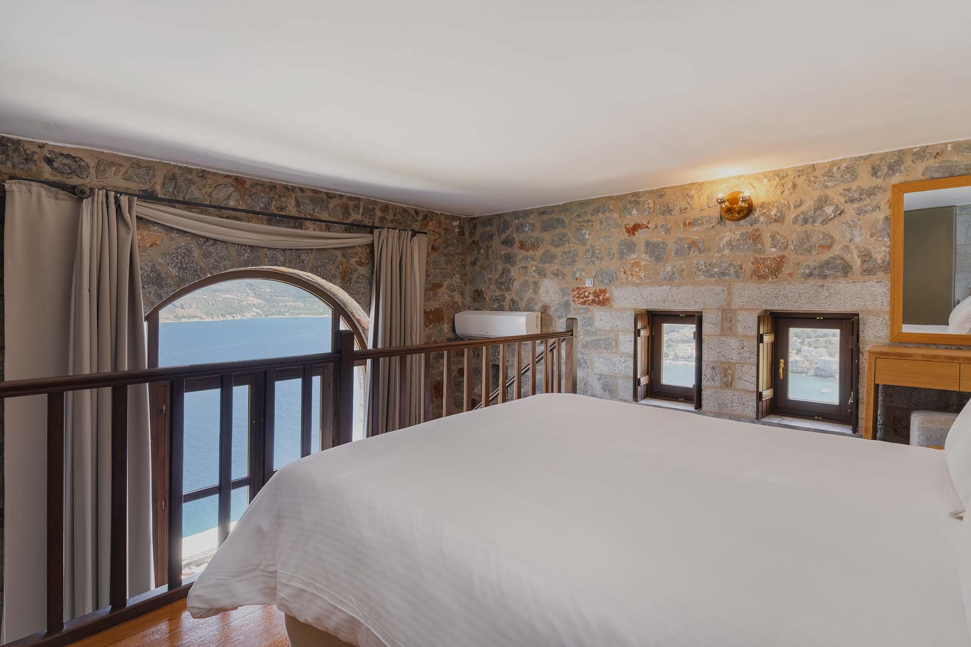 Very spacious, air-conditioned room is 40 sq.m.,featuring traditional décor with stone or marble floors and private balcony. Includes a kitchenette with fridge, 1 double bed,1 sofa bed, hairdryer and Olivia by Papoutsanis toiletries.