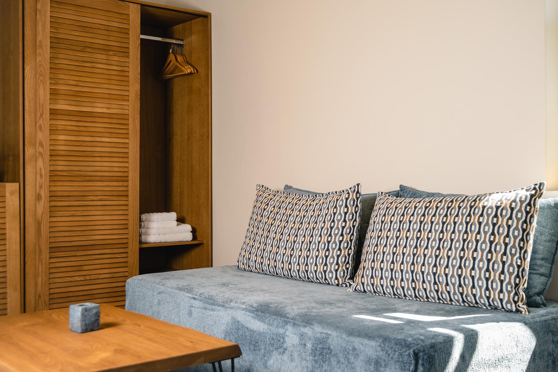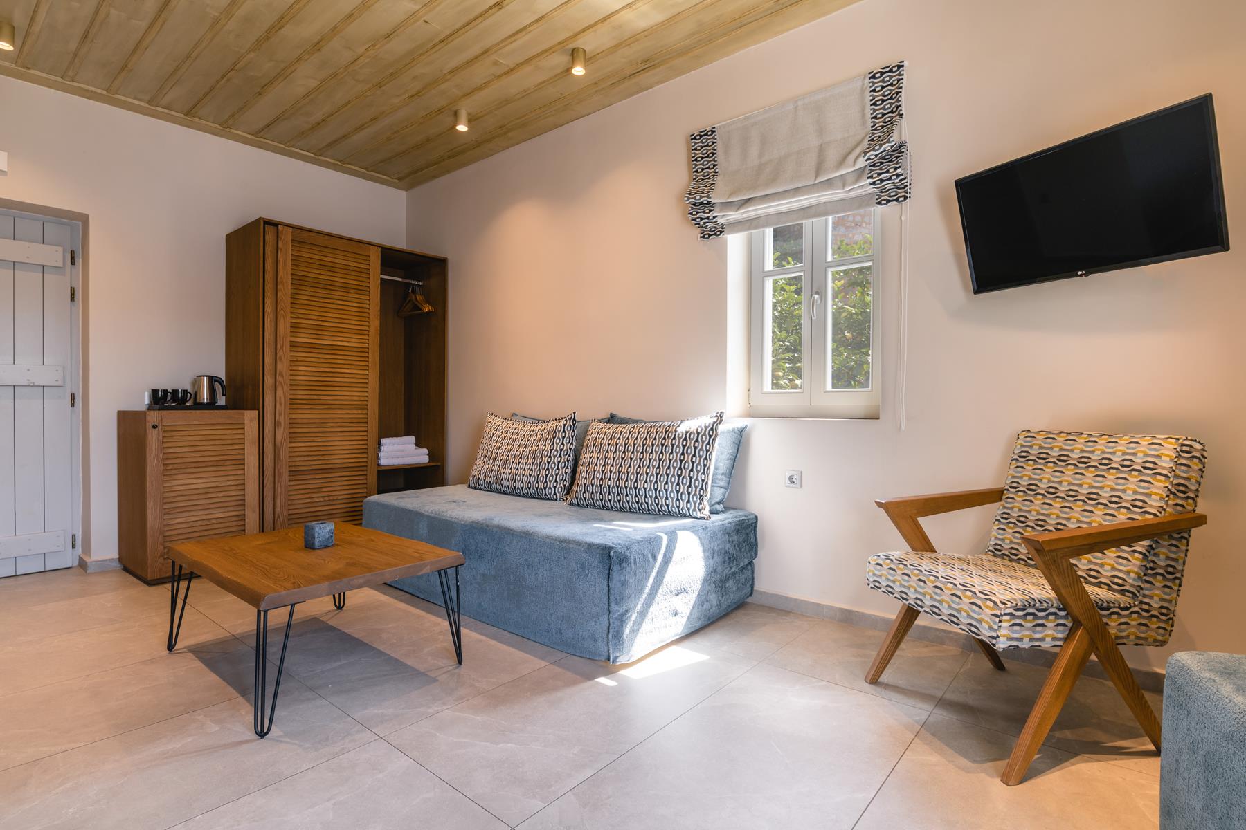 This air-conditioned room is 25 sq.m., has a balcony, private entrance, 1 double bed, 1 sofa, refrigerator, hairdryer and Olivia by Papoutsanis toiletries.